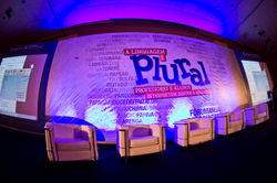 Convenção para 400 pessoas da equipe de professores da instituição. O conceito "A LINGUAGEM É PLURAL" trazia toda a diversidade da língua portuguesa nas 5 regiões do Brasil.